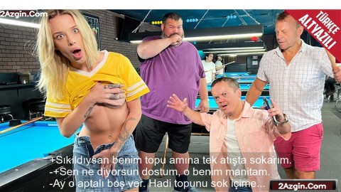 Arkadaşlarıyla Bilardo Oynarken Zorba Erkeklerden Bıkkınlık Geçiren Sarışın Kızın Amına Topunu Soktu